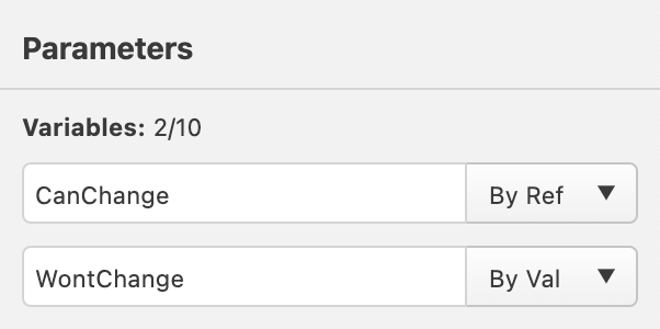 Pass By Reference Allows the custom script to modify the value of a variable parameter. Any changes to the variable's value from inside the script will also update the variable's value outside of the script. Use this if you want the custom script to be able to change the value of a variable that was passed in.